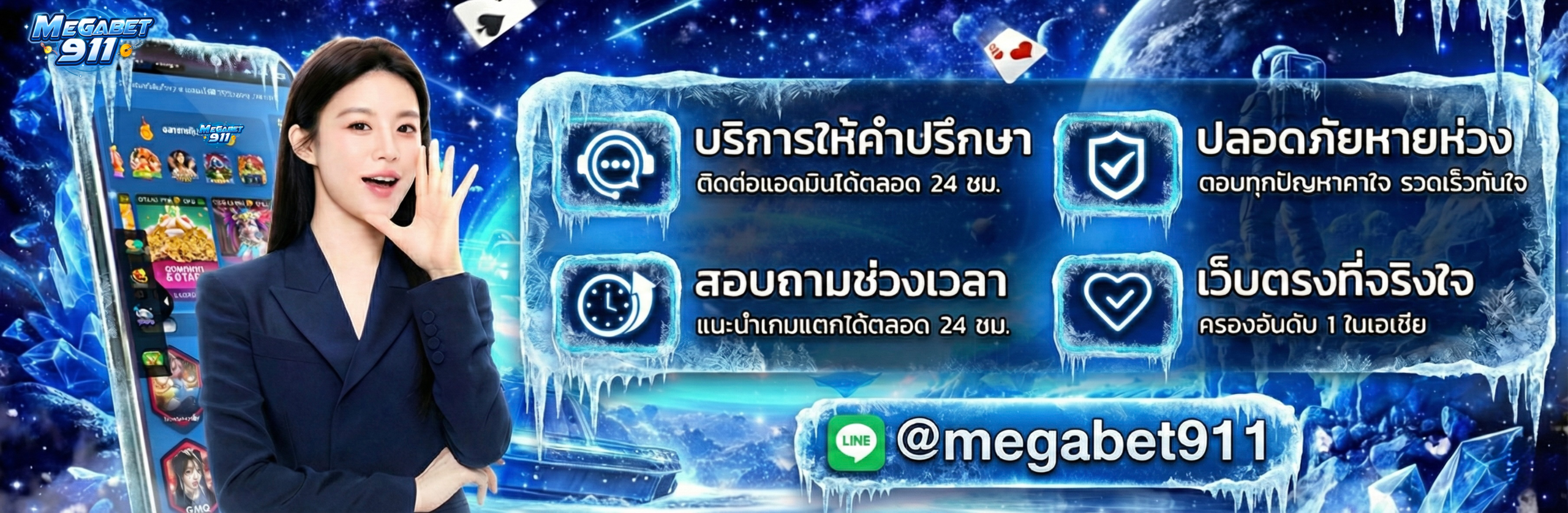 เว็บพนันออนไลน์ กีฬา คาสิโน ครบวงจร ปลอดภัย 100% ไม่ผ่านเอเย่นต์ เว็บตรง มั่นคง การเงินมั่นคง เล่นบนมือถือได้ทันที ไม่ต้องดาวน์โหลด เล่นผ่านเว็บ Mobile ทั้ง iOS และ Android รวดเร็ว สะดวก ให้บริการโดยทีมงานคุณภาพ พัฒนาด้วยเทคโนโลยีทันสมัย ทำให้ MEGABET911 น่าใช้ น่าเล่น เหมาะกับคนรุ่นใหม่ หากคุณเบื่อกับการเดิมพันแบบเดิมๆ ที่นี่คุณจะไม่ผิดหวัง สะดวกสบายสุดๆ